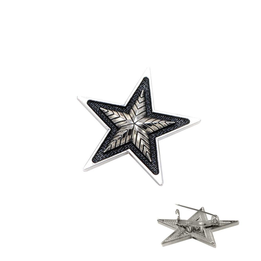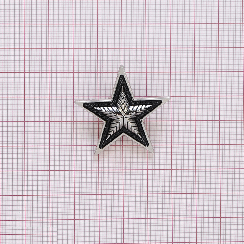Брошь Звезда 3.8см, никель и черная эмаль