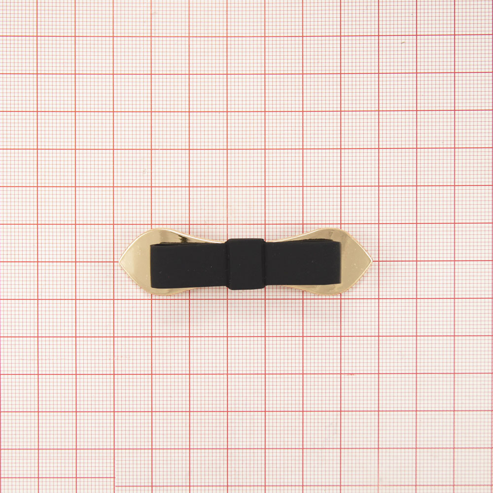 Краб металлический Ремешок-бантик 68*18мм GOLD, черный резиновый бантик, шт