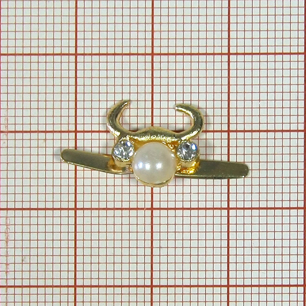 Краб металл Телец 13*12мм GOLD, белый жемчуг, белые камни, шт
