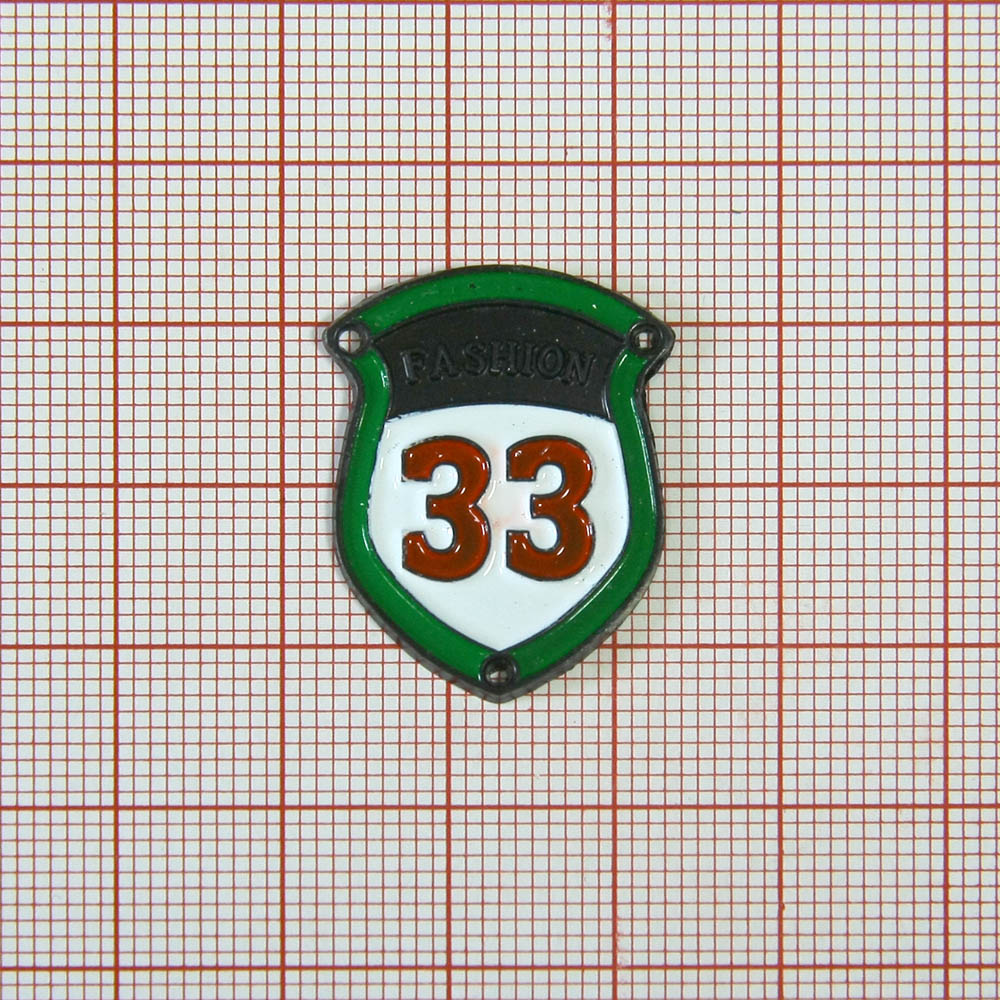 Лейба металл Fashion 33 NIKEL, белый, зеленый, черный, красная эмаль, 21*27мм