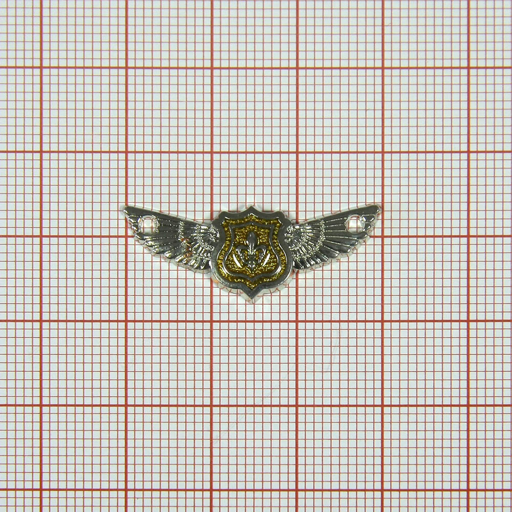 Лейба металл Герб с лилией и крыльями 30*11мм пришивная, NIKEL, желтый клей