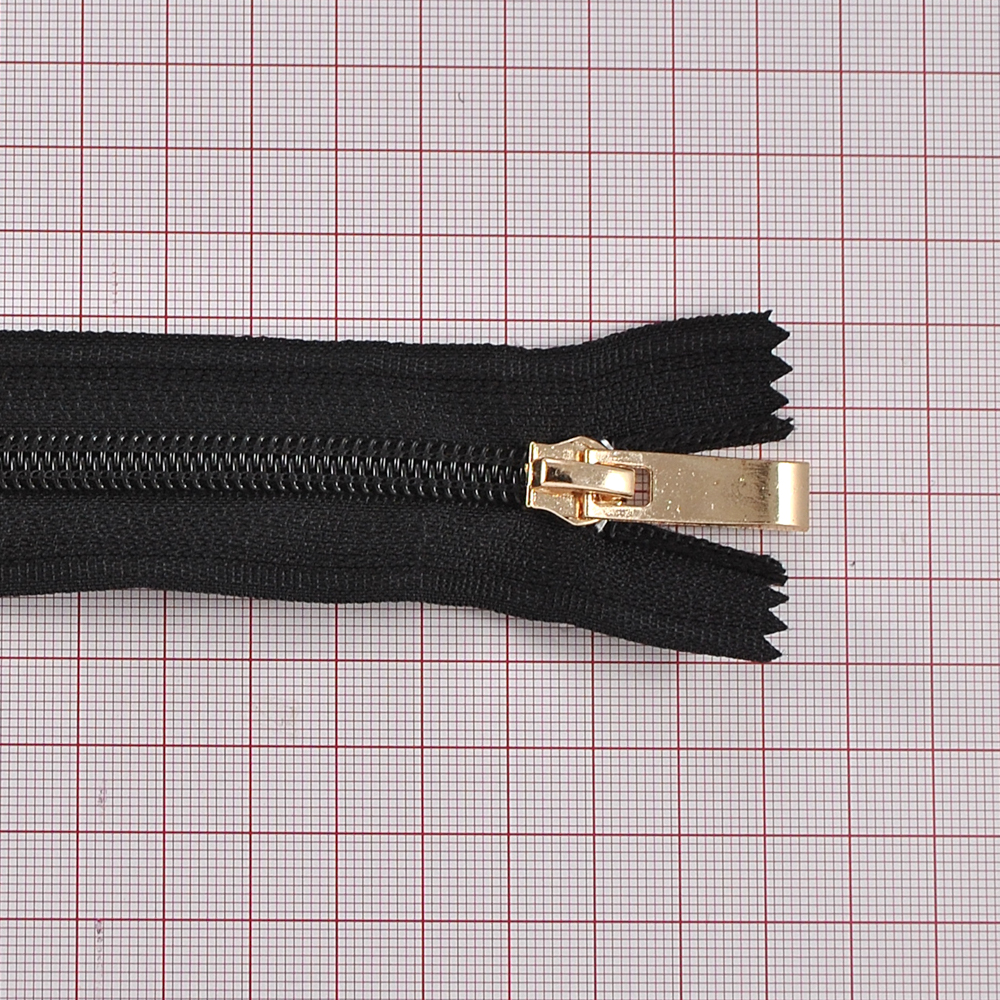 Змейка обувная нейлон №7, 35см, С/Е, черные зубцы и черная ткань, бегунок золото, шт