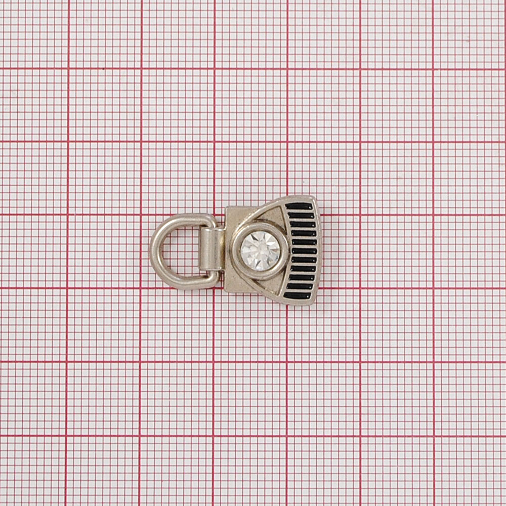 Петля обувная металл с хольнитеном, 2.4*1.5см, матовый никель, белый камень, черная эмаль, шт