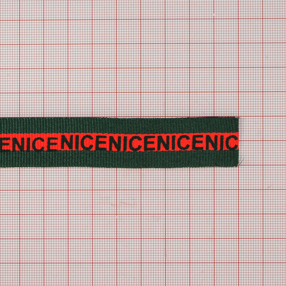 Тесьма репсовая с накаткой NICE 2см, зелено-красная и черный лого, ярд