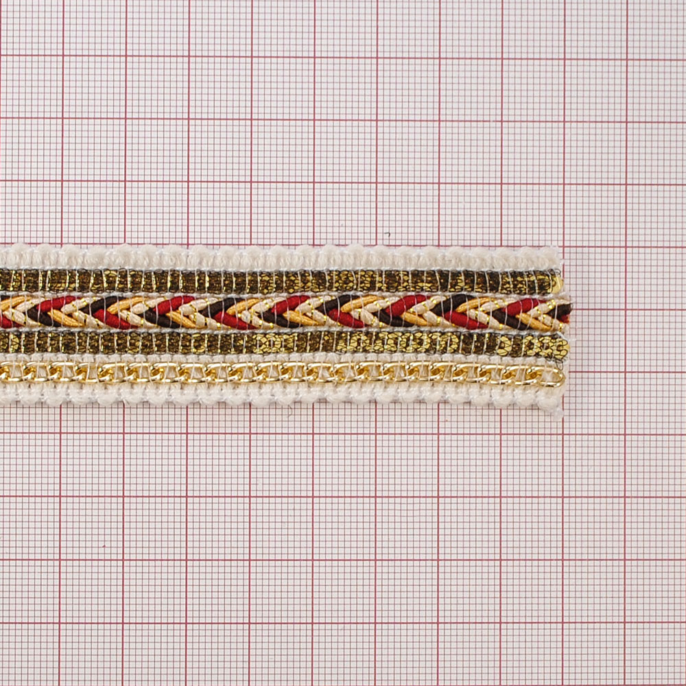 Тесьма Шнур, цепи и пайетки 2,6см белый, красный, коричневый, золотые пайетки, золотая цепь, золото, 50ярд