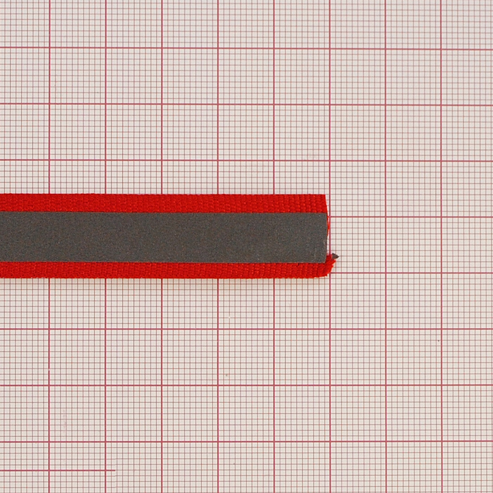 Тесьма светоотражающая на ткани 1,5см, красный, 50ярд