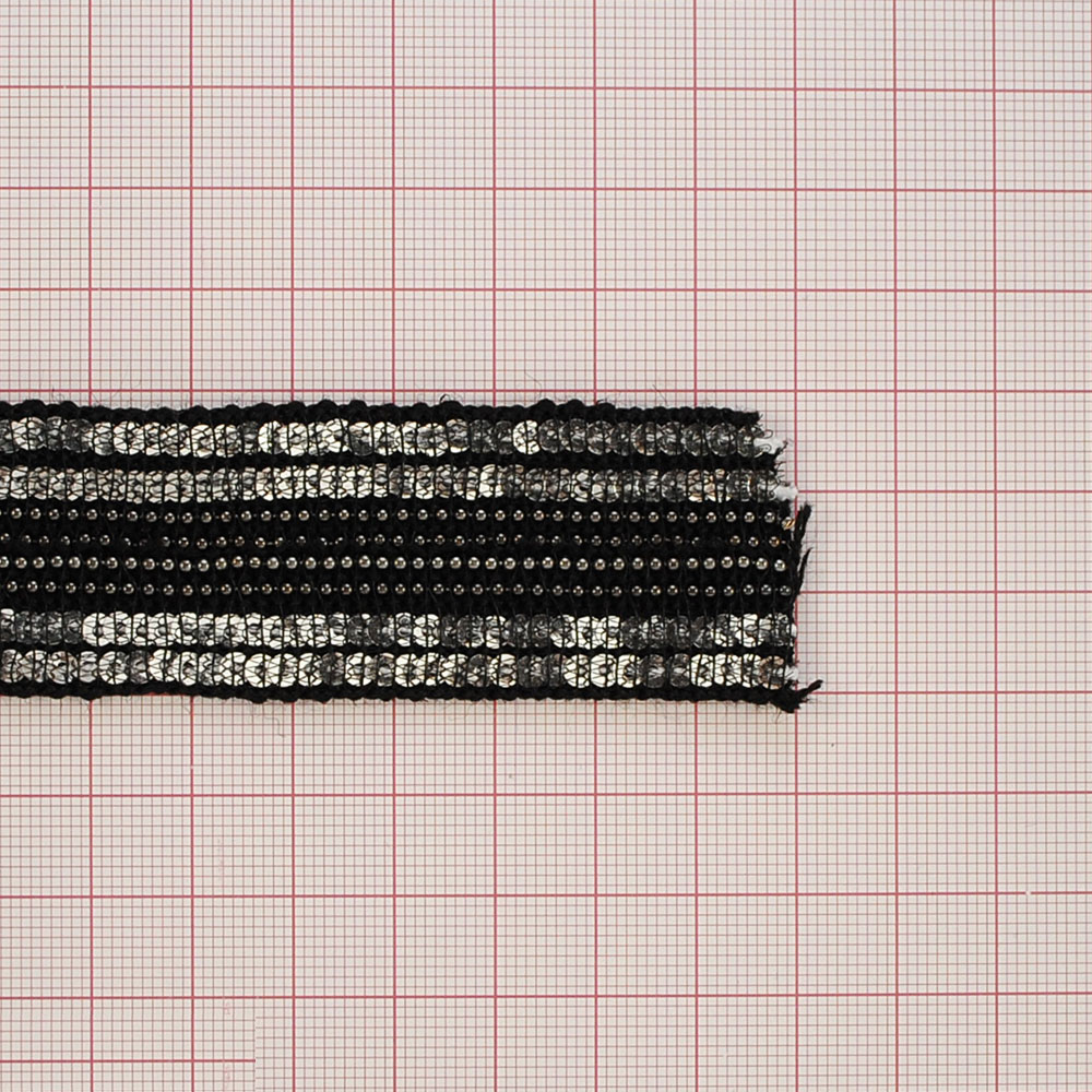 Тесьма Цепи с пайетками 3,7см черный, пайетки серебро, цепи никель, 50 ярд