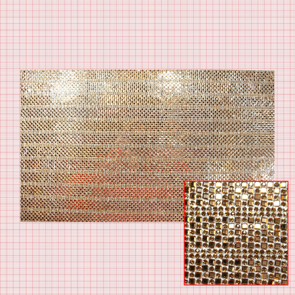 Стразы полотно Кирпичная кладка квадраты, золотые камни 24*40, 1лист
