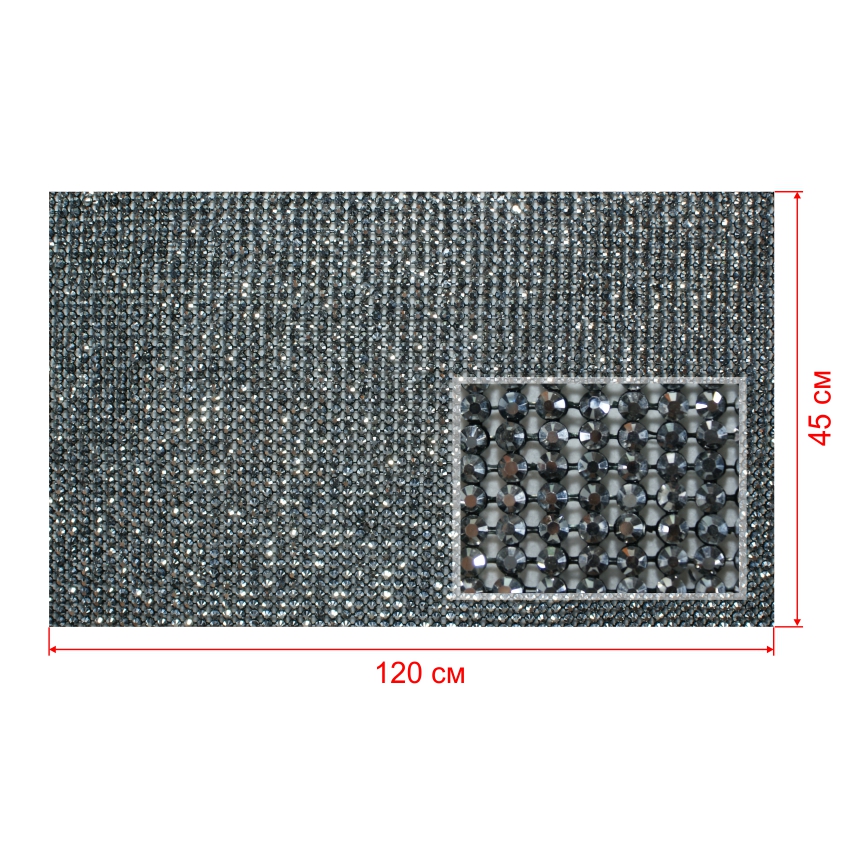 Стразы полотно клеевые №2а сетка черная, зеркальные (iron hematite) камни 3мм 45*120, 1лист