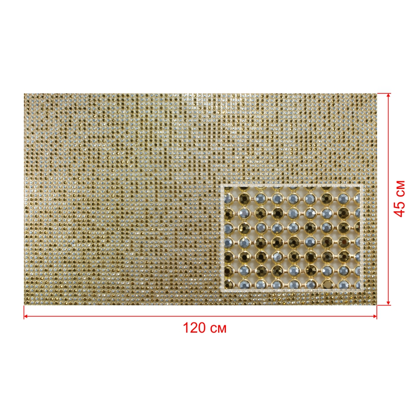 Стразы полотно клеевые №4а Сетка золото, серые камни, темный топаз камни 3мм 45*120, 1лист