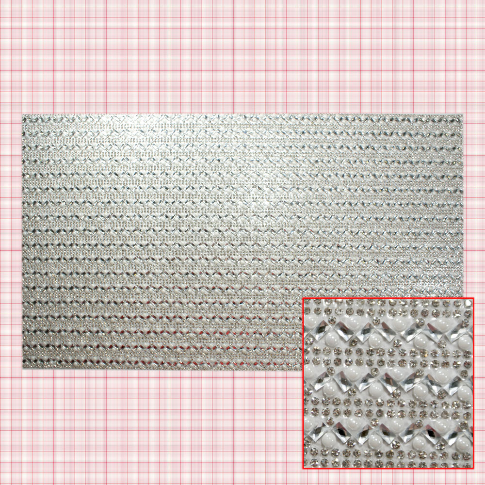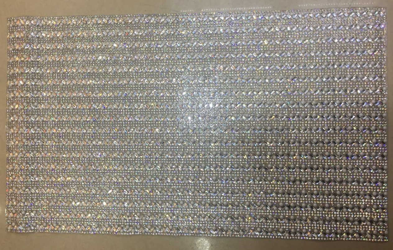 Стразы полотно клеевое белые камни прямоугольные 3*5мм, белый жемчуг 4мм, 40*24см, 1лист