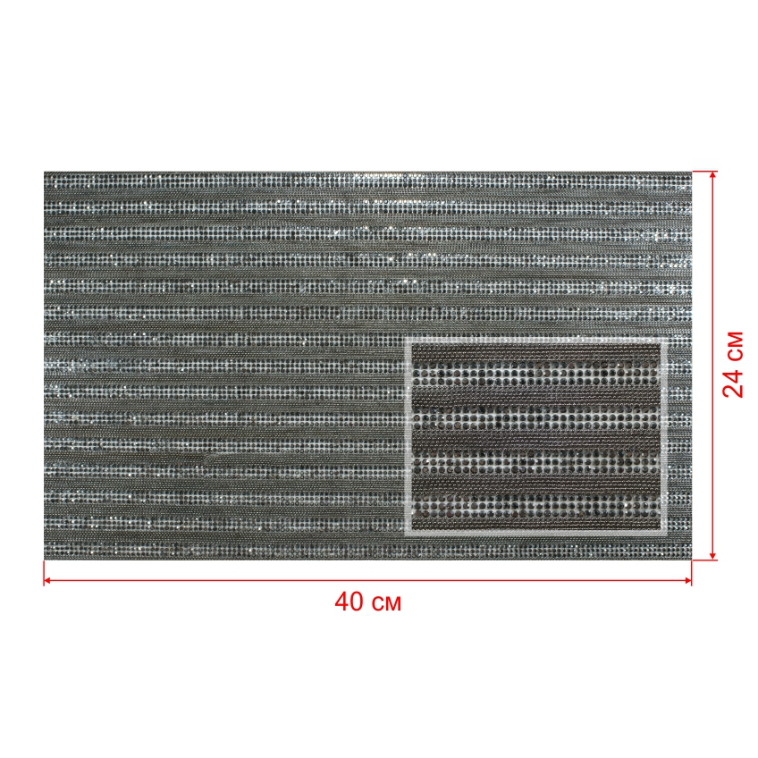 Стразы полотно клеевое дорожка 1,5см 3 ряда черные (blackHematite) камни, цепь шарик3 BN 24*40см, 1лист