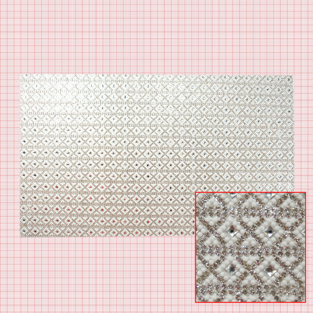 Стразы полотно клеевое квадраты белые камни, белый жемчуг 4*4мм, 40*24см, 1лист