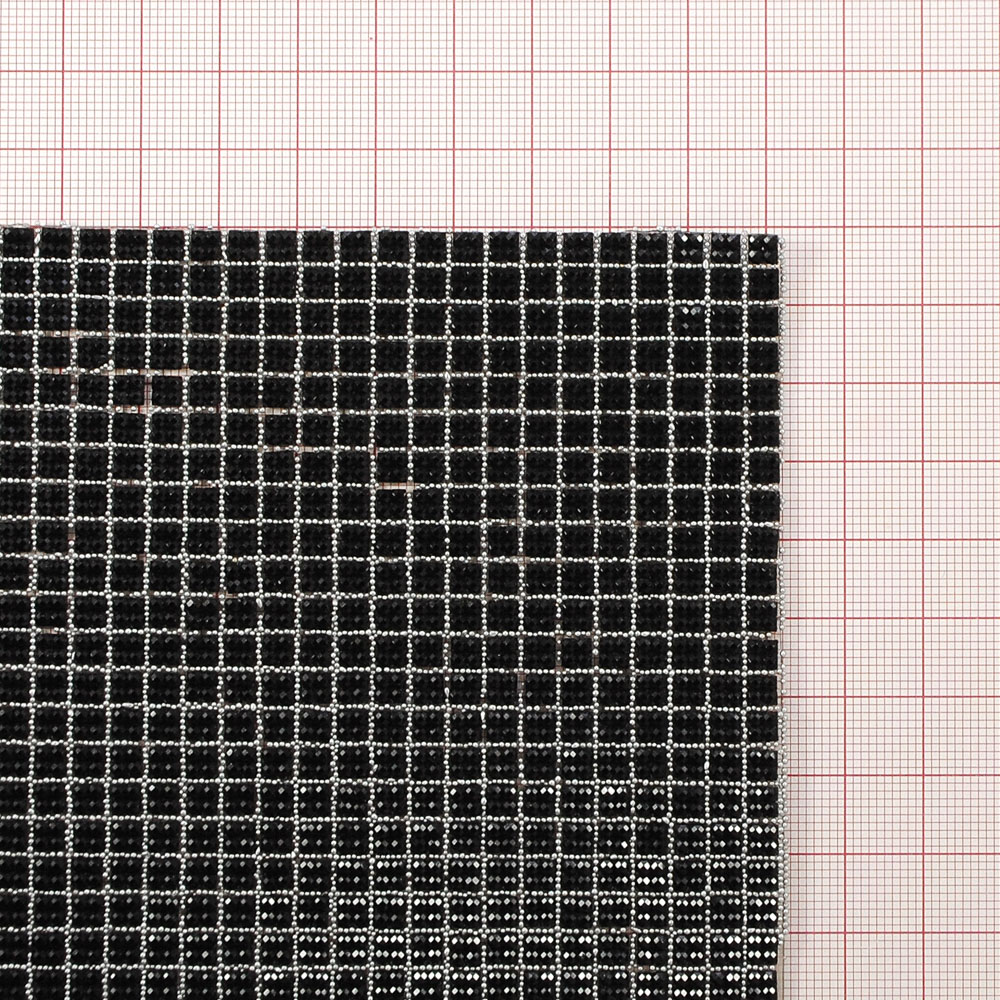 Стразы полотно клеевое 24*40см, черный, никель квадраты, 1лист