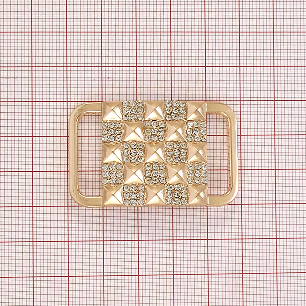 Перетяжка Шахматка 23мм GOLD, белые камни