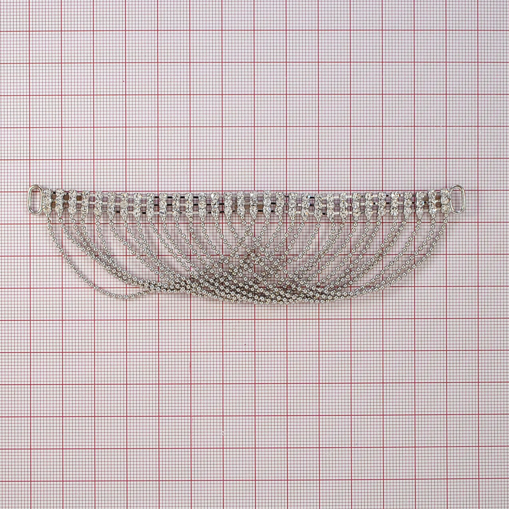 Укр.стекл. 9880 перетяж. 3,8*1,7см NIKEL, 32*3 мелк.бел.камни, 16 тонких сплетен.цепочек