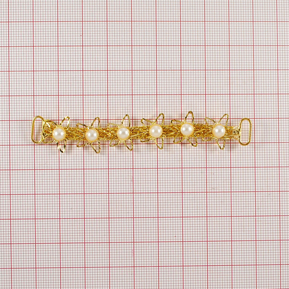 Укр.стекл. 9887 перетяж. 8,3*1,2см GOLD, 6 металл.звезд, камни-жемчуг, на цепи