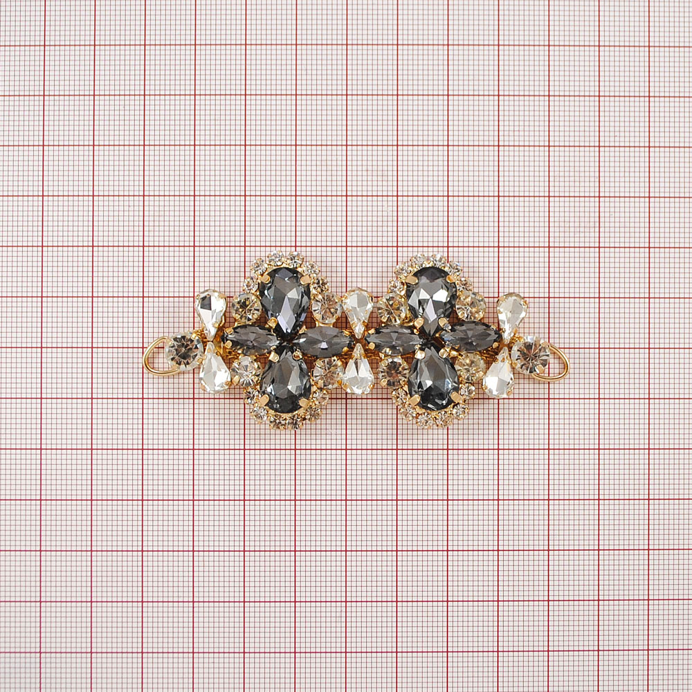 Украшение стекло перетяжка SH-812 Зеркальные бантики GOLD, белые камни, bl. diamond /73*36мм (6мм)