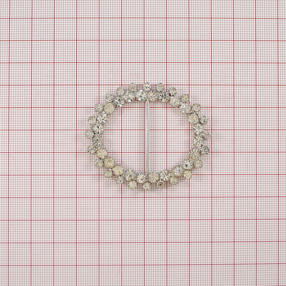 Укр.стекл. пряжка овал Венок 6,1*5,4см /бел.камни/, NIKEL, шт