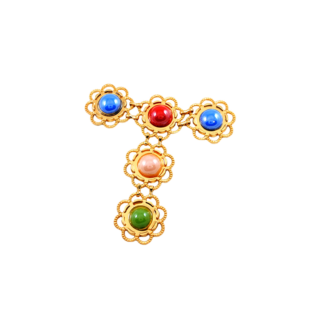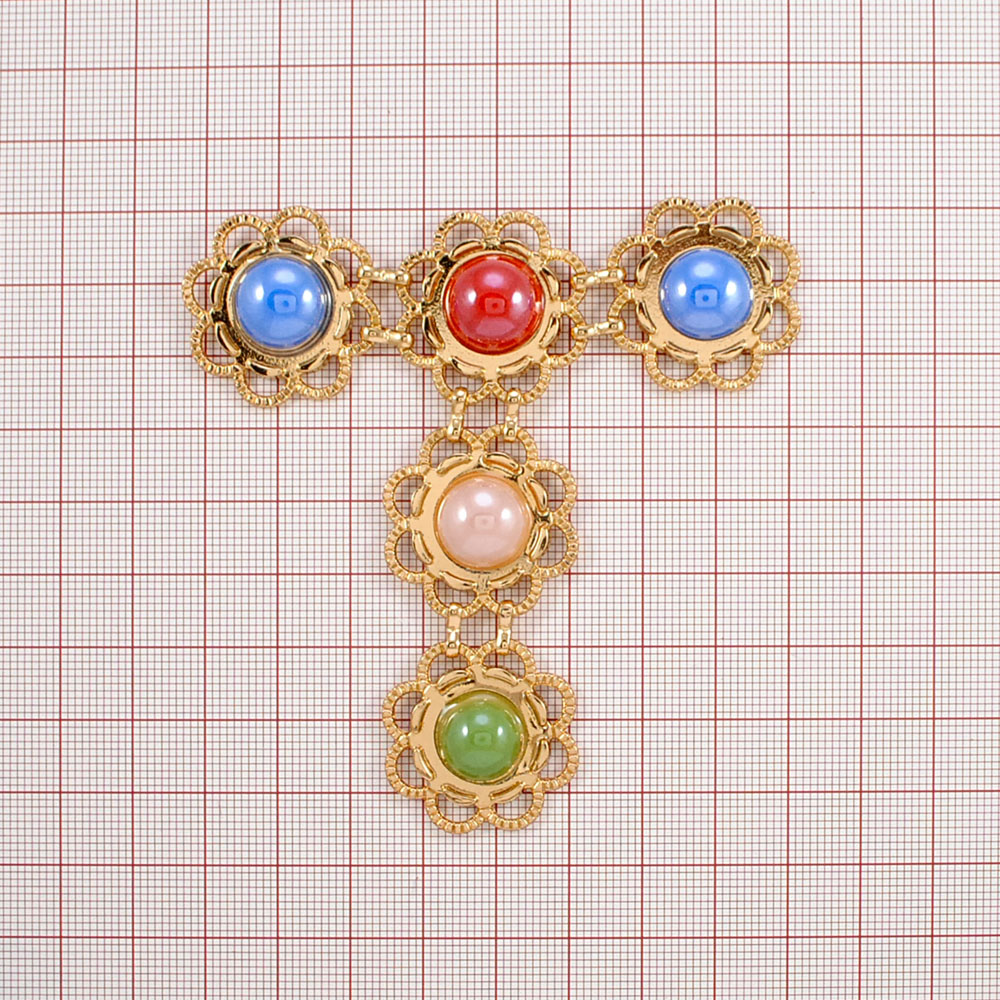 Украшение стекло Сандали 5 ромашек драже 85*90мм GOLD, цветные камни пластик, перетяжка тройная
