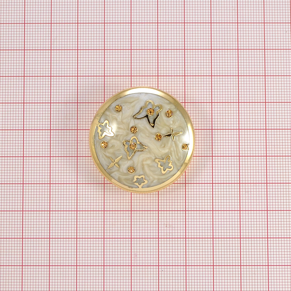 Пуговица шубная 32791111 Бабочки 39мм GOLD, светло-серый перламутр, топаз камни, шт