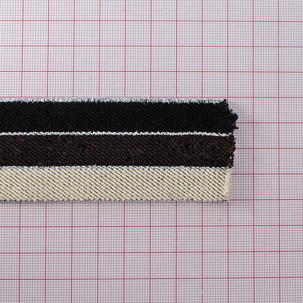 Резинка Полосы 4см, черный, коричневый, бежевый и серебряная нить, 50ярд