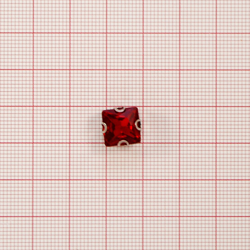 Стразы пришивные в металле, квадрат, 1*1см, красный, шт
