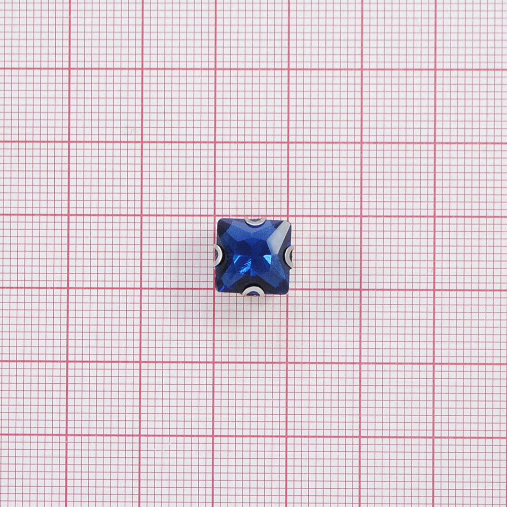 Стразы пришивные в металле, квадрат, 1*1см, темно-синий, шт
