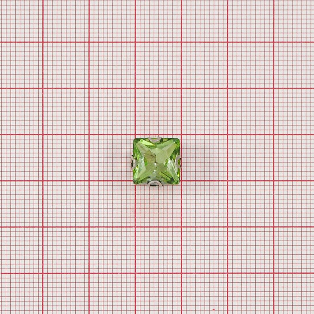 Стразы пришивные в металле, квадрат, 1*1см, зеленый, шт