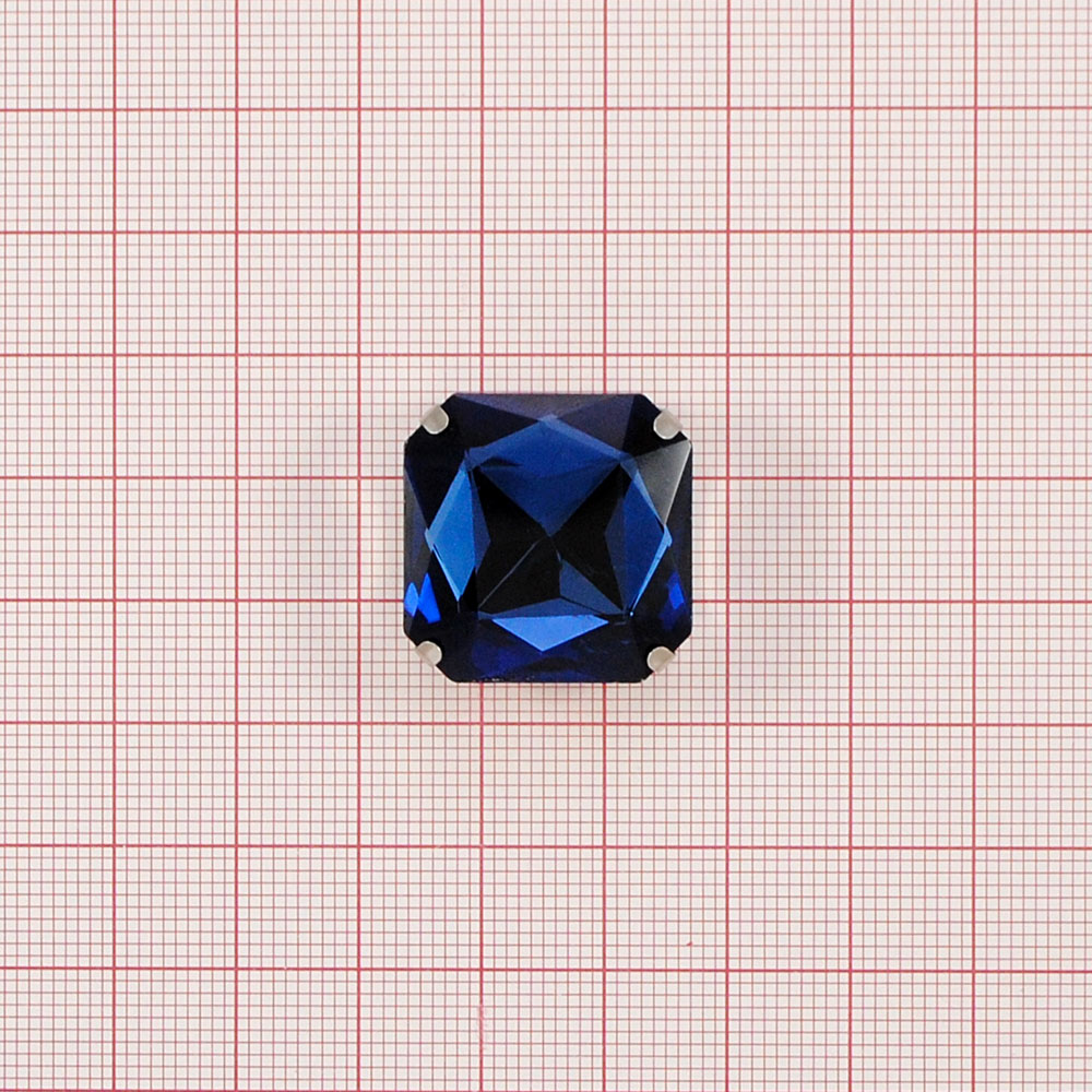 Стразы пришивные в металле, квадрат, 2,3*2,3см, темно-синий, шт