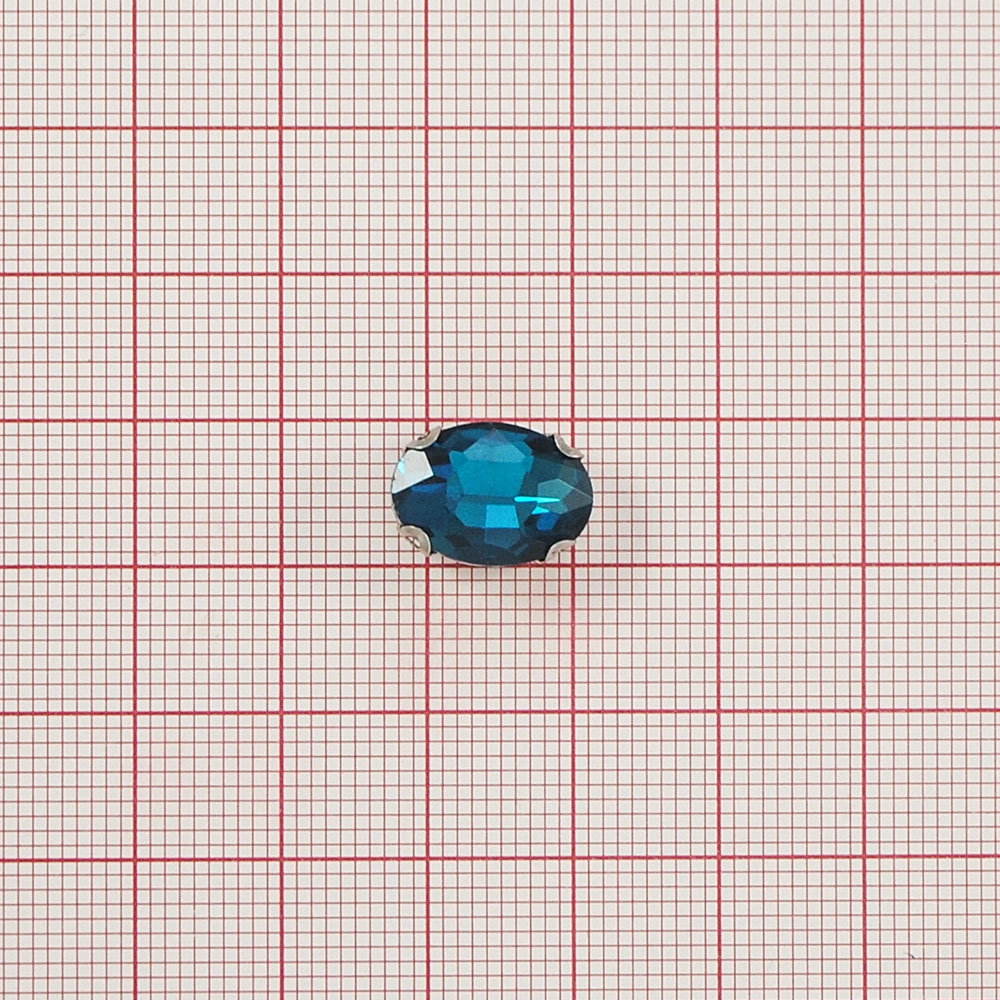 Стразы пришивные в металле, овал, 1*1,4см, темно-голубой, шт
