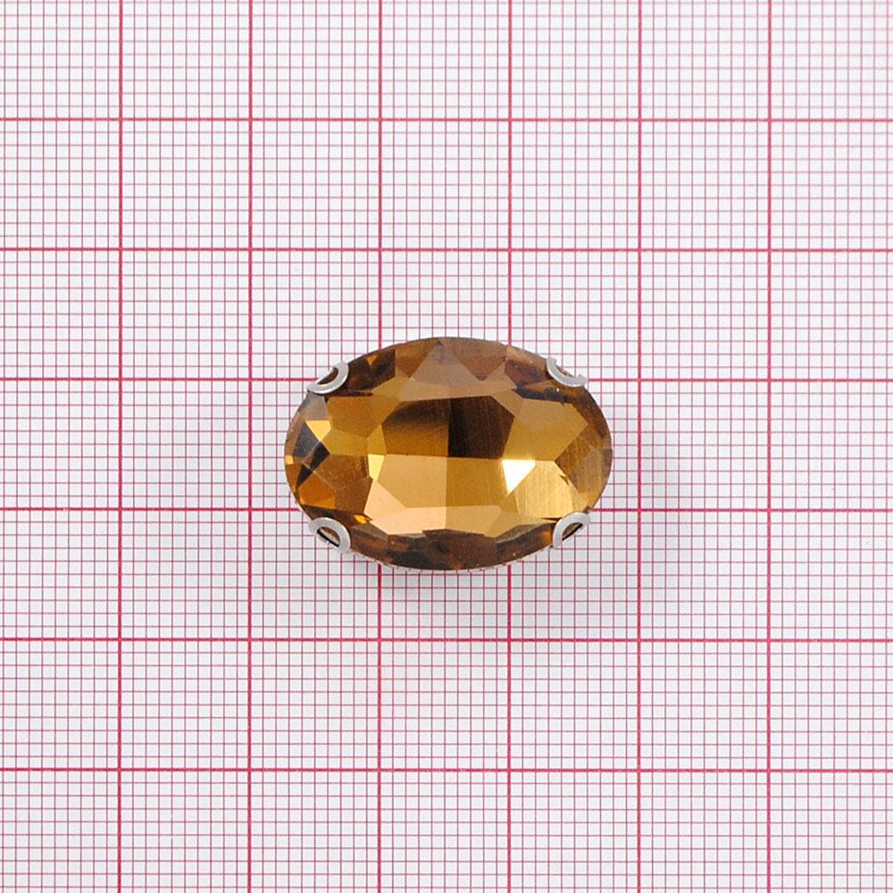 Стразы пришивные в металле, овал, 1,8*2,5см, топаз, шт