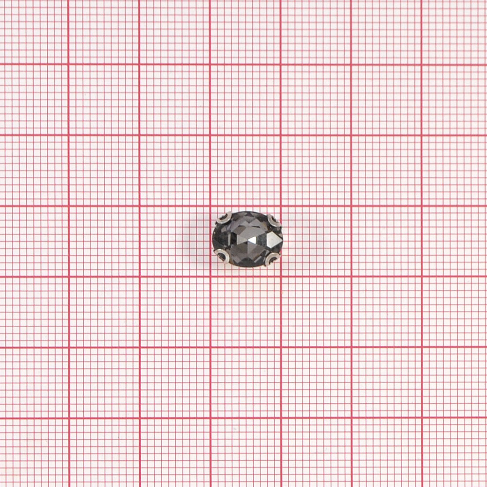 Стразы пришивные в металле, овал, 8*10мм, black diamond, шт