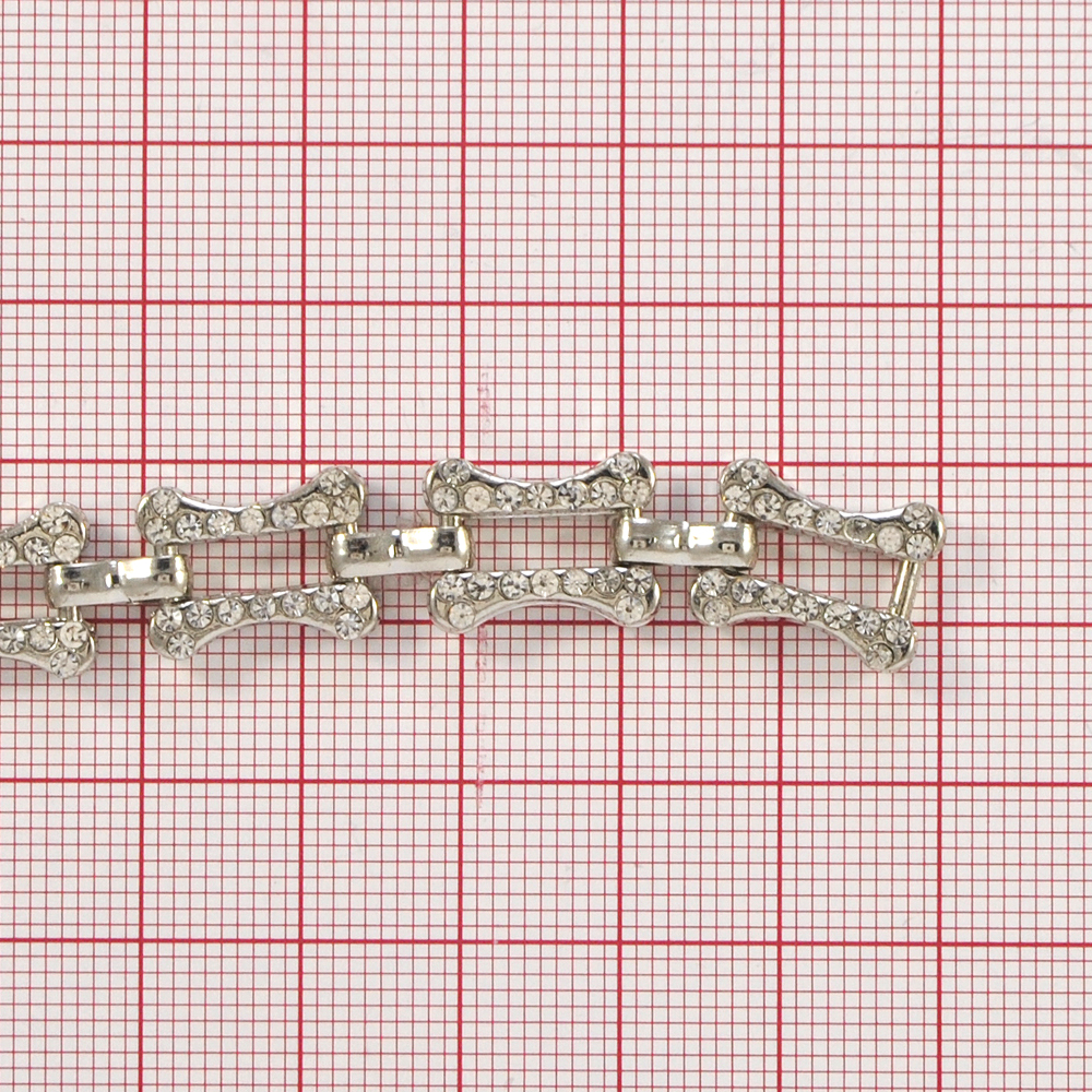Тесьма металл и стразы Косточка, 1,5*1см, никель, белый, ярд