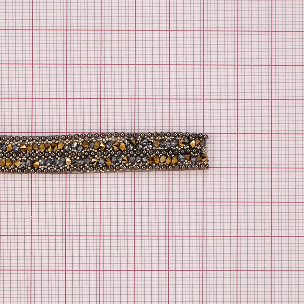 Тесьма стразы клеевые 10мм цепь black nikel, графит-золото камни, ярд