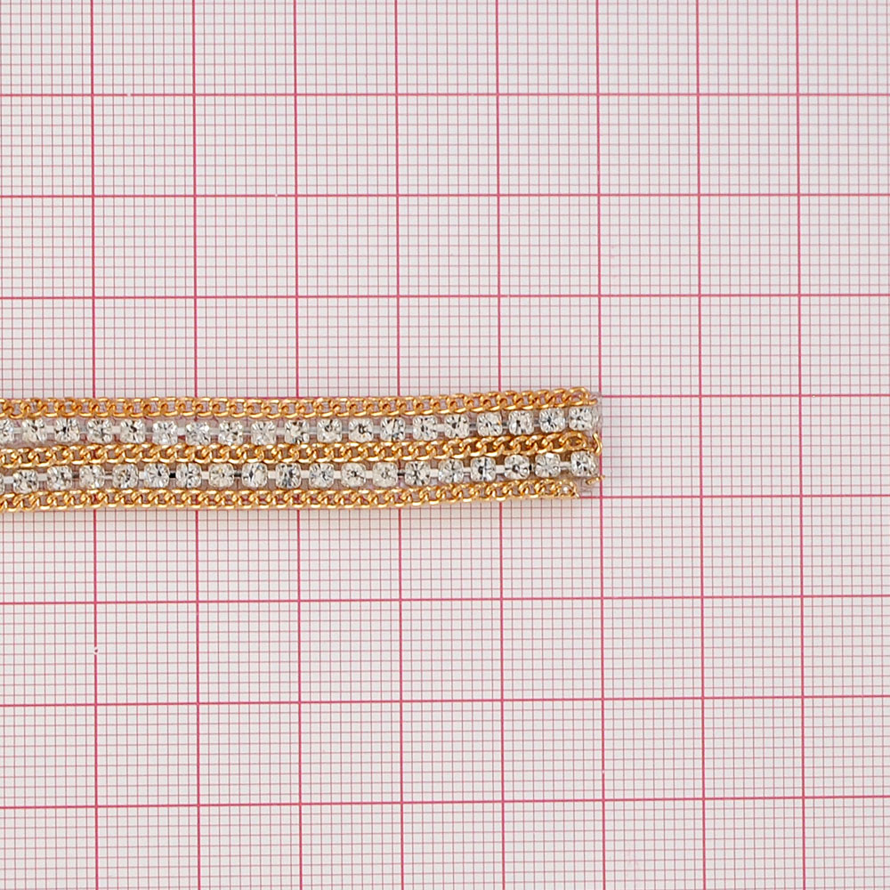 Тесьма стразы клеевые 13мм цепь GOLD, кристалл камни, ярд