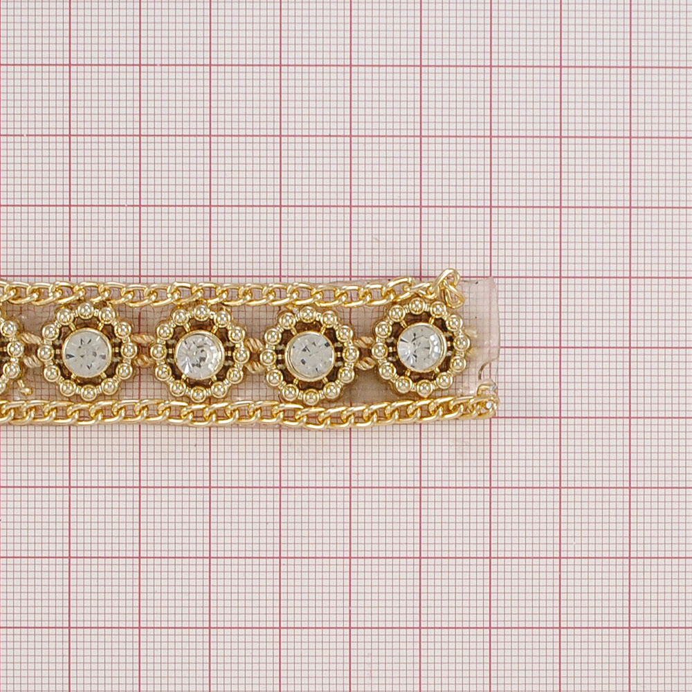 Тесьма стразы клеевые Колеса 20мм цепь GOLD, белые камни 5мм, ярд