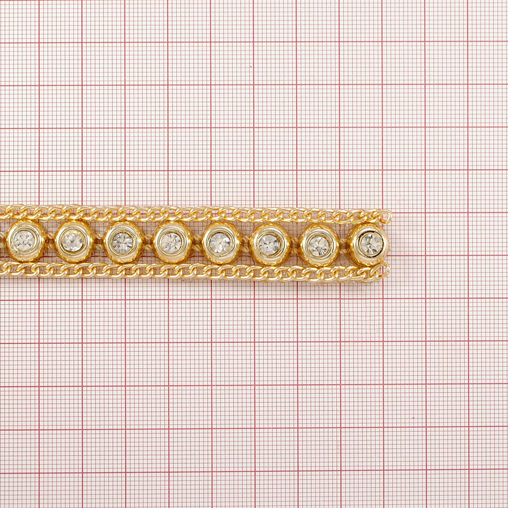 Тесьма стразы клеевые Точки 15мм цепь GOLD, белые камни 5мм, ярд