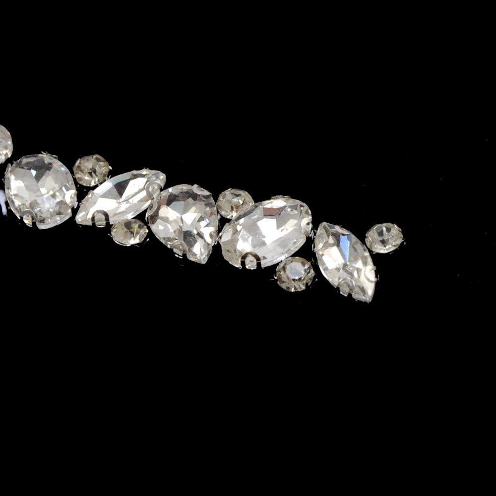 Тесьма стразы клеевая Капли, белые камни, ярд