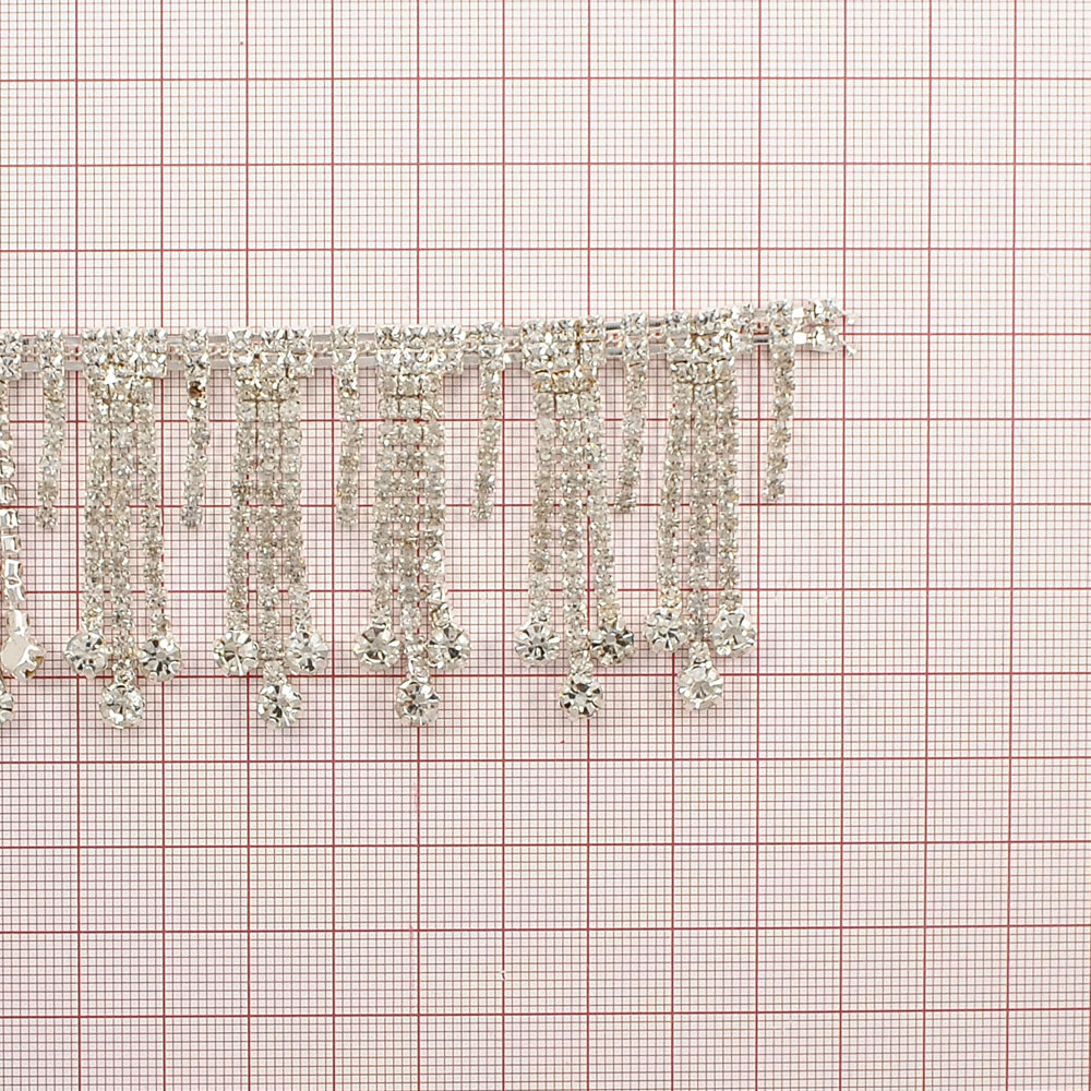 Тесьма стразы с подвесками из страз, 4,5см, белый, ярд