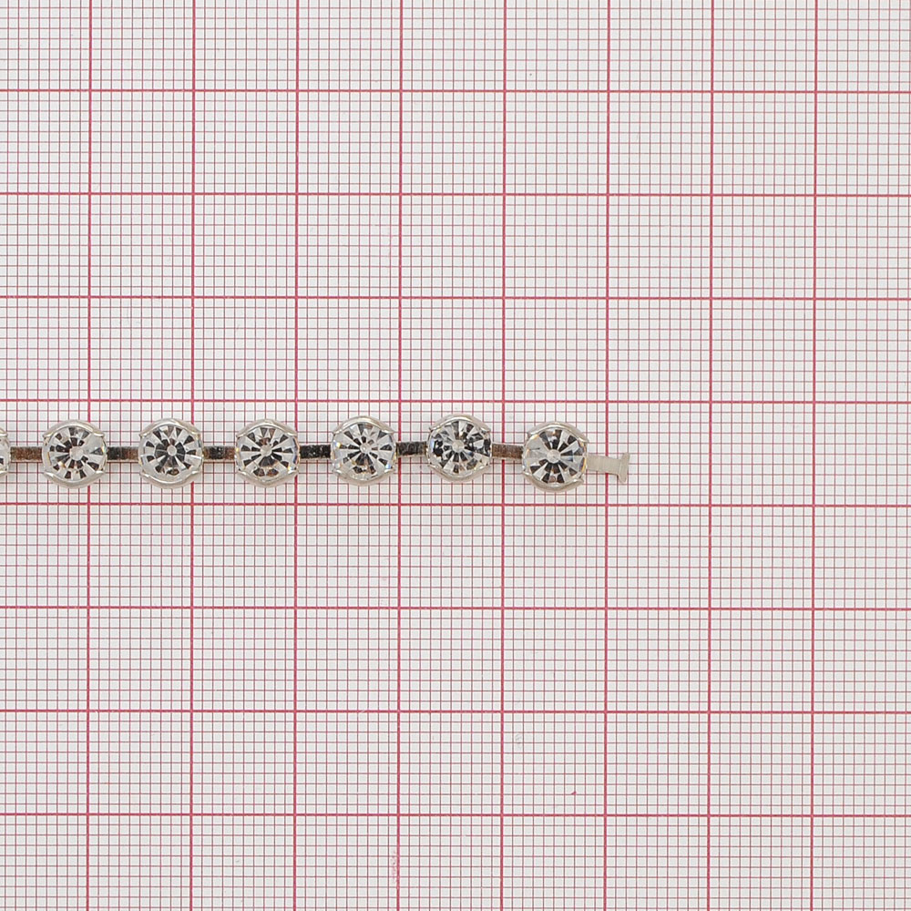 Тесьма стразы SS28 никель, белые камни, ярд