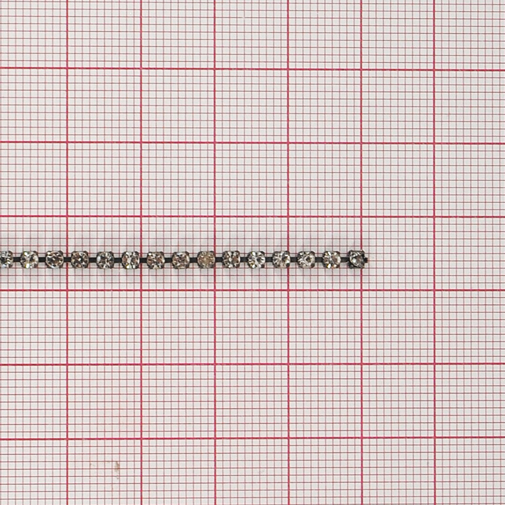 Тесьма стразы SS8, никель блек, белые камни, ярд