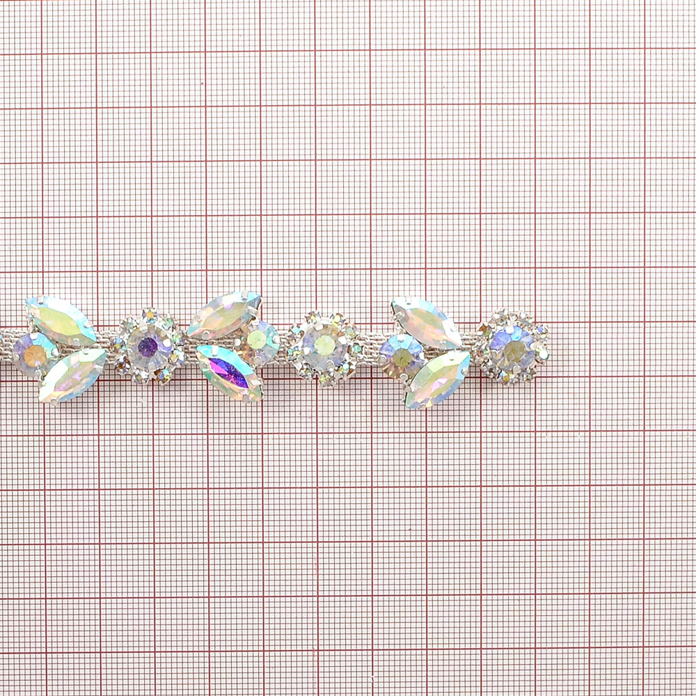 Тесьма стразы цепь, 1,6см, белый, белый хамелеон, ярд