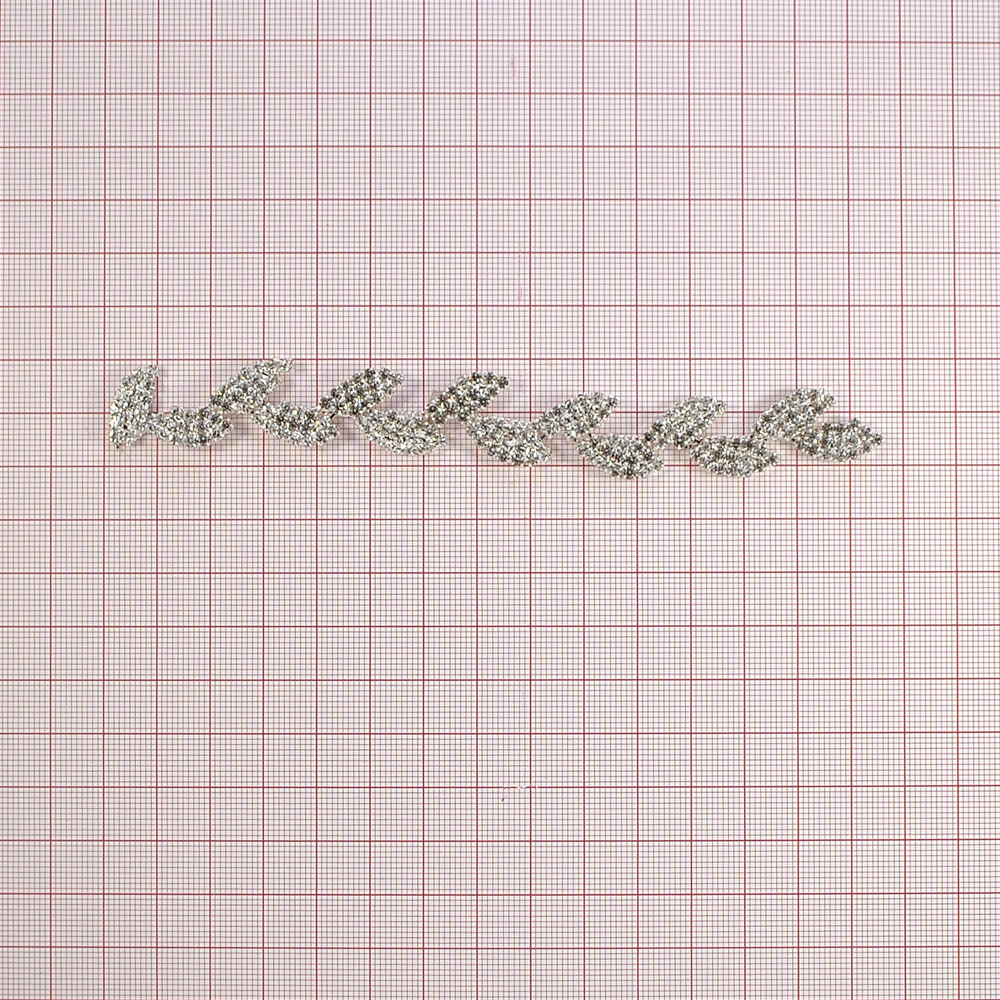 Тесьма стразы Листочки, 1,8см, никель, белый, ярд