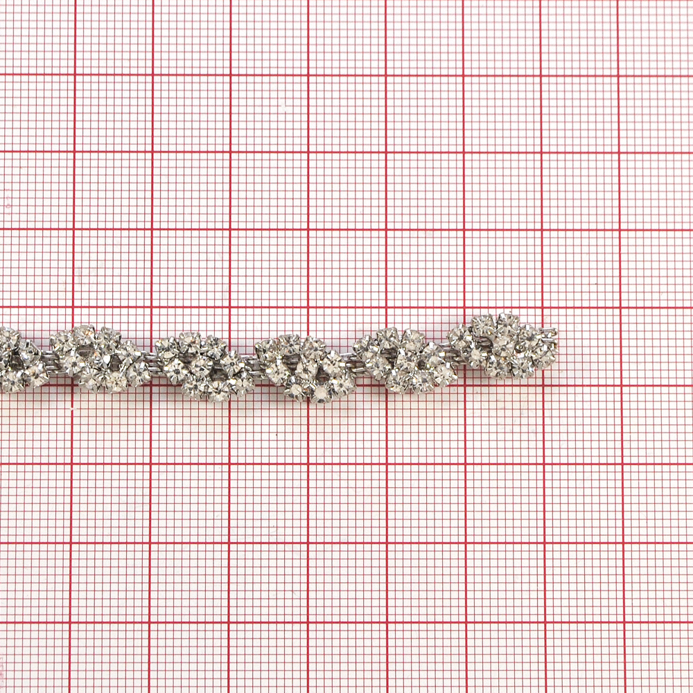 Тесьма стразы Цветочная дорожка, никель, белый, ярд