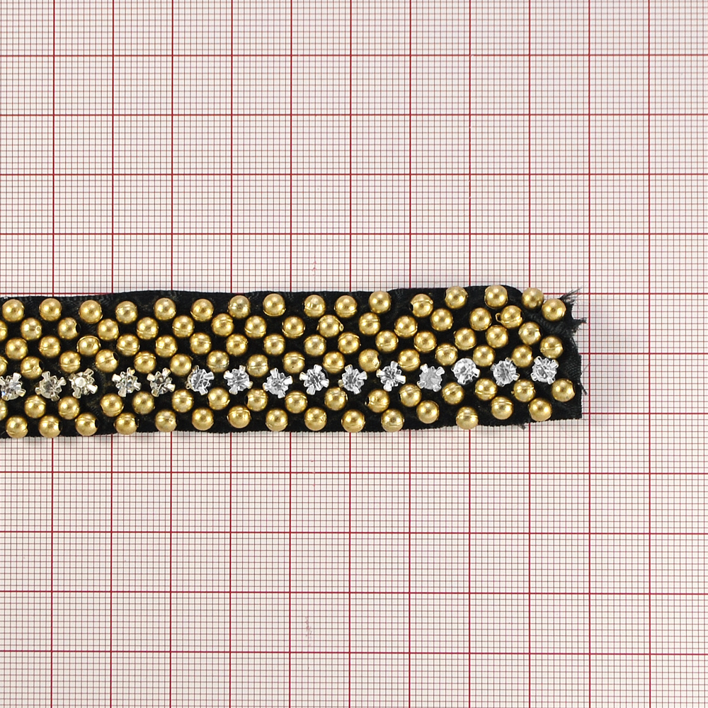 Тесьма Млечный путь, 2,5см, белые камни, золотые бусины, ярд
