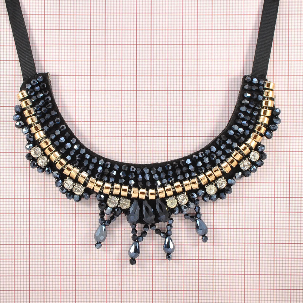 Воротник завязки Подвески черный и чернильные камни, цепь GOLD, шт