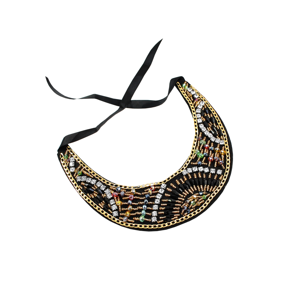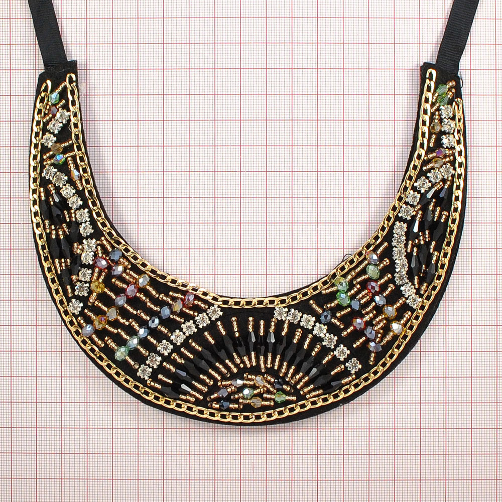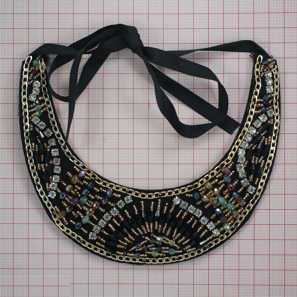 Воротник завязки, черный войлок, gold, цветные пластик камни, белые камни, шт
