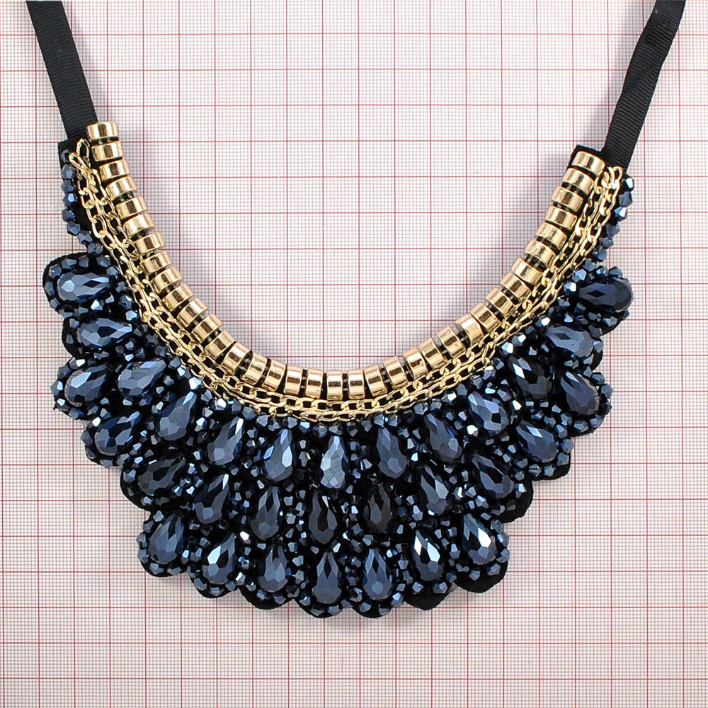 Воротник завязки, черный войлок, gold, темно-синие пластиковые камни, шт