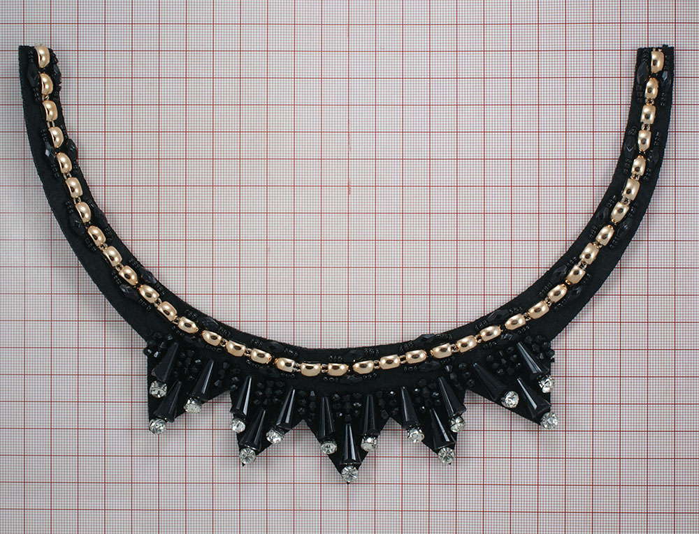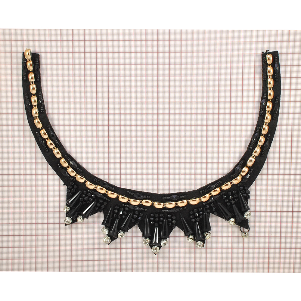 Воротник Шея черный, цепь золото, черный колокольчик, белые камни, шт